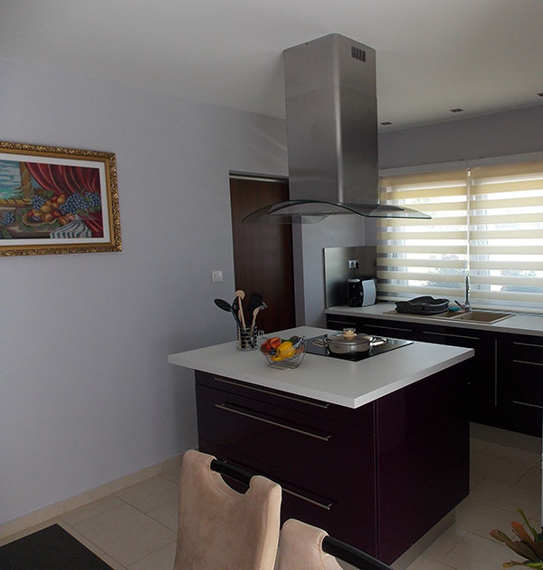 Modern konyhabútor konyhaszigettel főzőlappal, páraelszívóval.