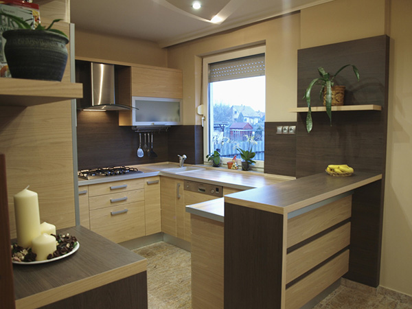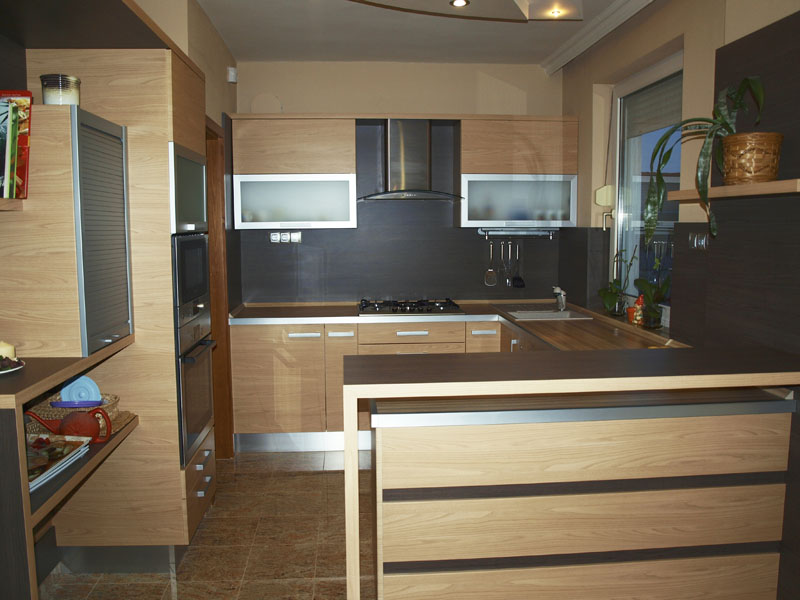 Konyhabútor reggelizőpulttal tölgy színben