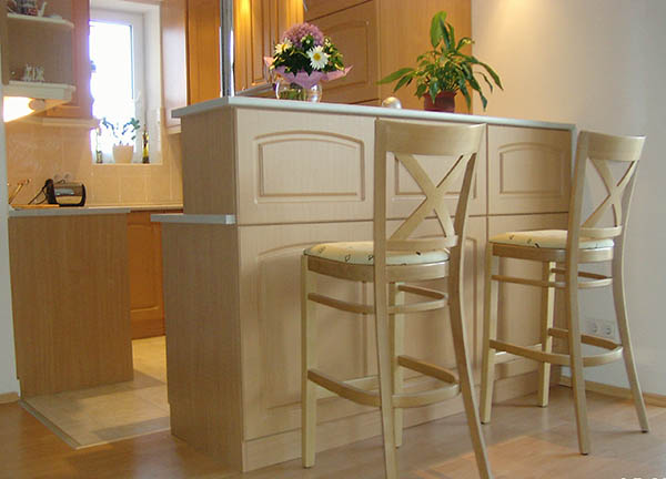 Bükk színű konyhabútor reggeliző pulttal.